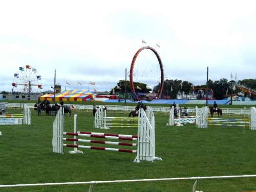 The view across the horse show ring to where the side shows and ride are.
