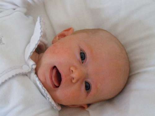 Cassidy in her cot this morning, a very happy baby, and also contented, quite alot darker than Lucy, dont think this one will be a blond