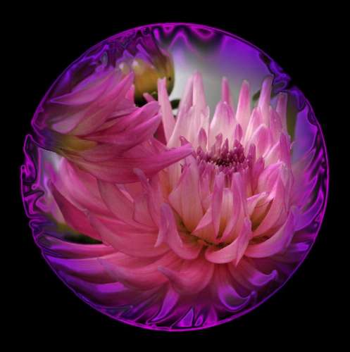 Dahlia Dreaming Ball, -- the cactus dahlia from our garden, manipulated into another form of beauty.