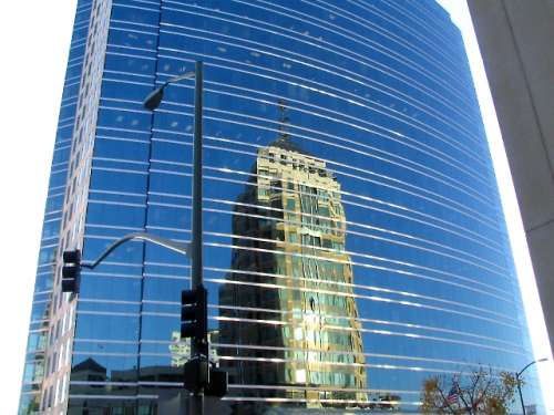 Ronald V. Dellums Federal Building reflection from the east side.
