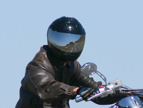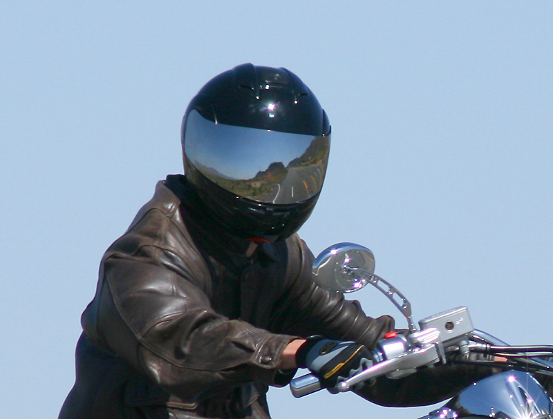 While out taking photos of the bikers on the Laughlin River Run I caught this secret agent looking guy going up the highway at 55mph. I thought the reflection from his helmet was cool. I was panning my camera and he noticed me and turned his head to look at me :)
