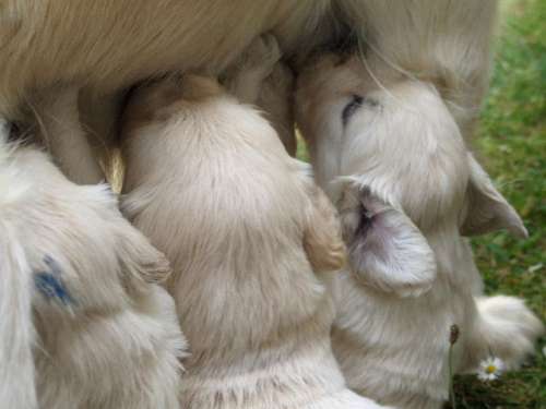 Poor mum had seven to feed, it was every puppy for himself. they are growing so fast.