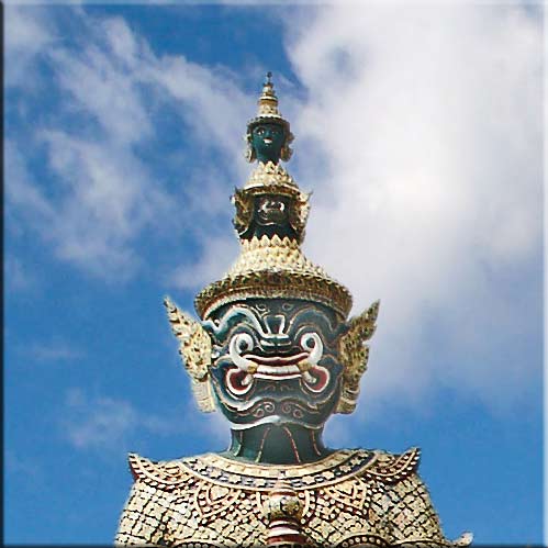 One of the very impressive gate guardians at the temple of the Emerald Buddha in Bangkok.