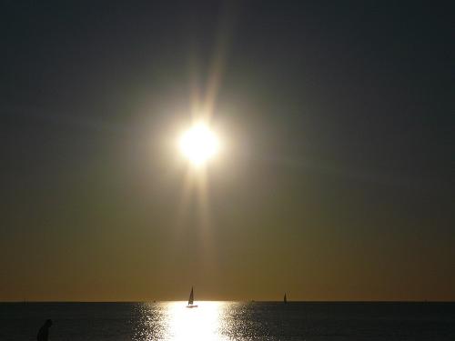 An Australian evening at the beach, and a boat sailing right into the sunset - like in a dream...