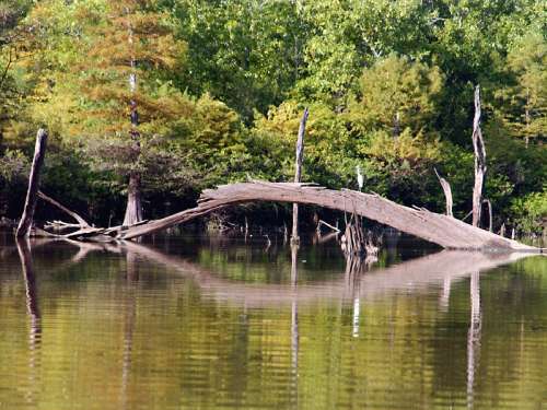 Great Egret - Ardea albaPerched on a fallen tree in the swamp