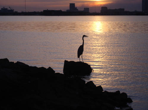 This is of my favorite photographs. I asked permission from a neighbor with a riverside lot if I could get some sunset shots. When I saw a great blue heron standing on a rock on the river, I crept in for a silhouette.