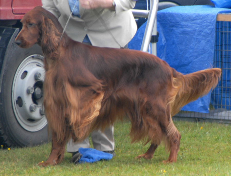 This beautiful dog on the way to the ring. her coat just shimmered in the sunlight.