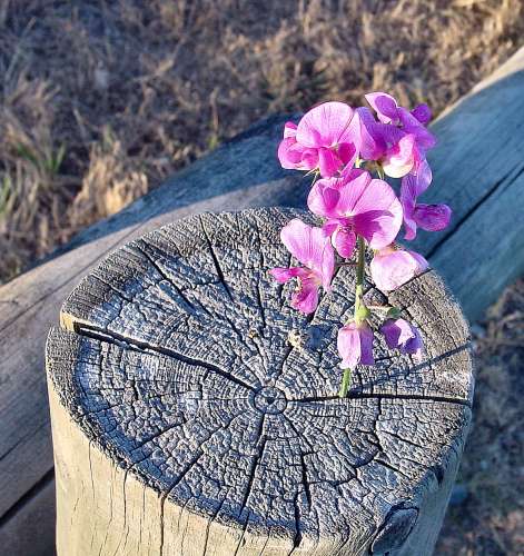 wild sweetpea flower that I stuck in the fence post at the beach that summer day.