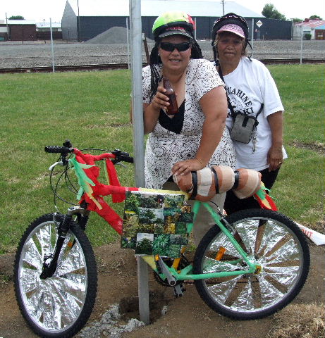 These two were out for fun on the bike ride, judging by the pictures on the side of her bike, I think she's with the green party and keeping the planet green.