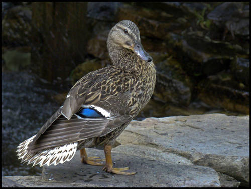 anne - Jun 29, 2008 12:30 PM EDT Thank you for the wonder of seeing Miss Mallard up close. I didn't realize they had that beautiful blue eye on their backs! The beak had a bluish look to it also, it seemed to me. And its white tail feathers were the perfect touch!! *g* Perfectly lovely! A beauty Queen for sure.