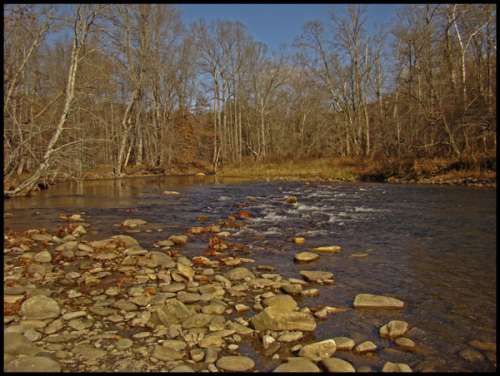 Guest - Nov 30, 2007 05:32 PM EDT A little feeling of sadness comes over me for winter will be along soon.Will the stream ice over completely. Oh, it looks like a man leaning up against tree - not far from left side - to me. *g* I get so mixed up with directions. Beautiful picture!!!
