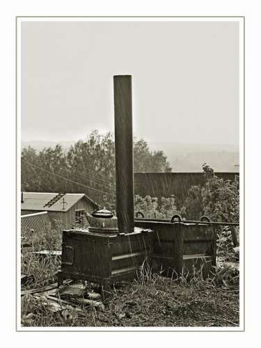 Guest - Apr 05, 2005 11:19 AM EDT Maya, I love all your pictures they are very sharp and clear and interesting. I like this one of stove outdoors and that big Teakettle is beautiful.Doesnt that stove get rusty out in the weather? I have old woodstove I may have to try this.