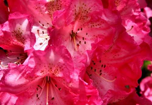 lovely pink Rhodos on our neighbour's front lawn. There are two very large shrubs of these there. Another was broken off by one of the winter storms, so am happy these survived.