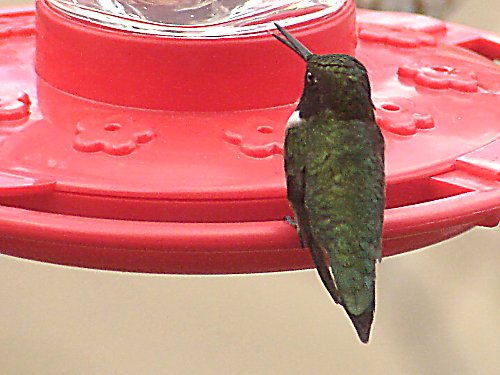 Our first ruby throated hummingbird of the season showed up this evening.He just grabbed a sip of nectar and left in a hurry so I couldn't get a shot of his ruby colored throat this time.
