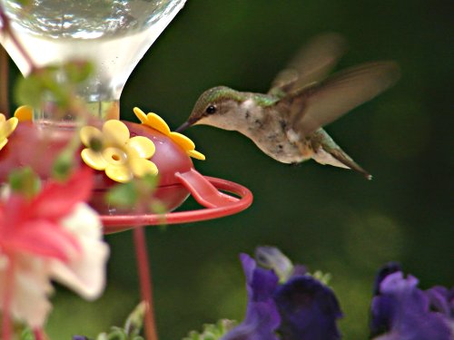 A ruby throated hummer at our feeder.