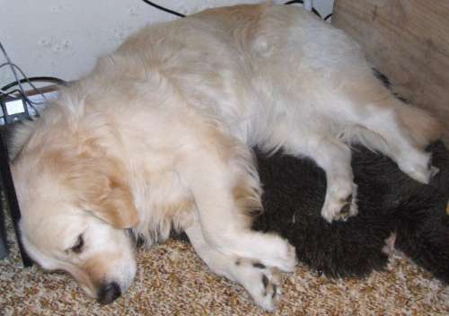 Rusty asleep under the computer bench while I work, he even has a sheep skin to sleep on. "SPOILT"