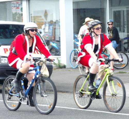 These two Santa,s got quite a few cheers from on lookers.