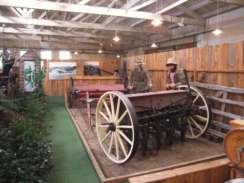 I think this is what you call it, as its pulled along seeds are dropped into furrows in the soil, the bin above is where the sacks of seed were poured into. Old farm machinery on display at Tawhiti Museum NZ.