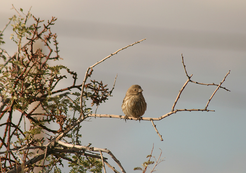 This is a common brown finch and they are everyplace you look. This was taken in the evening and it looks like this one is ready for bed. The large photo is a better view.