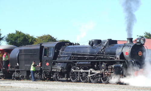 A steam train filling with water.