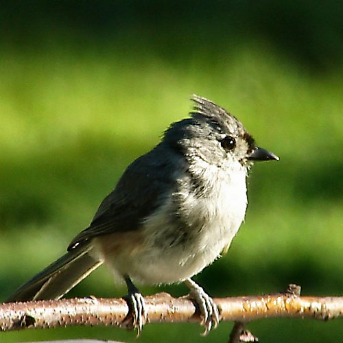 A tufted titmouse perched on a branch near our perennial garden.